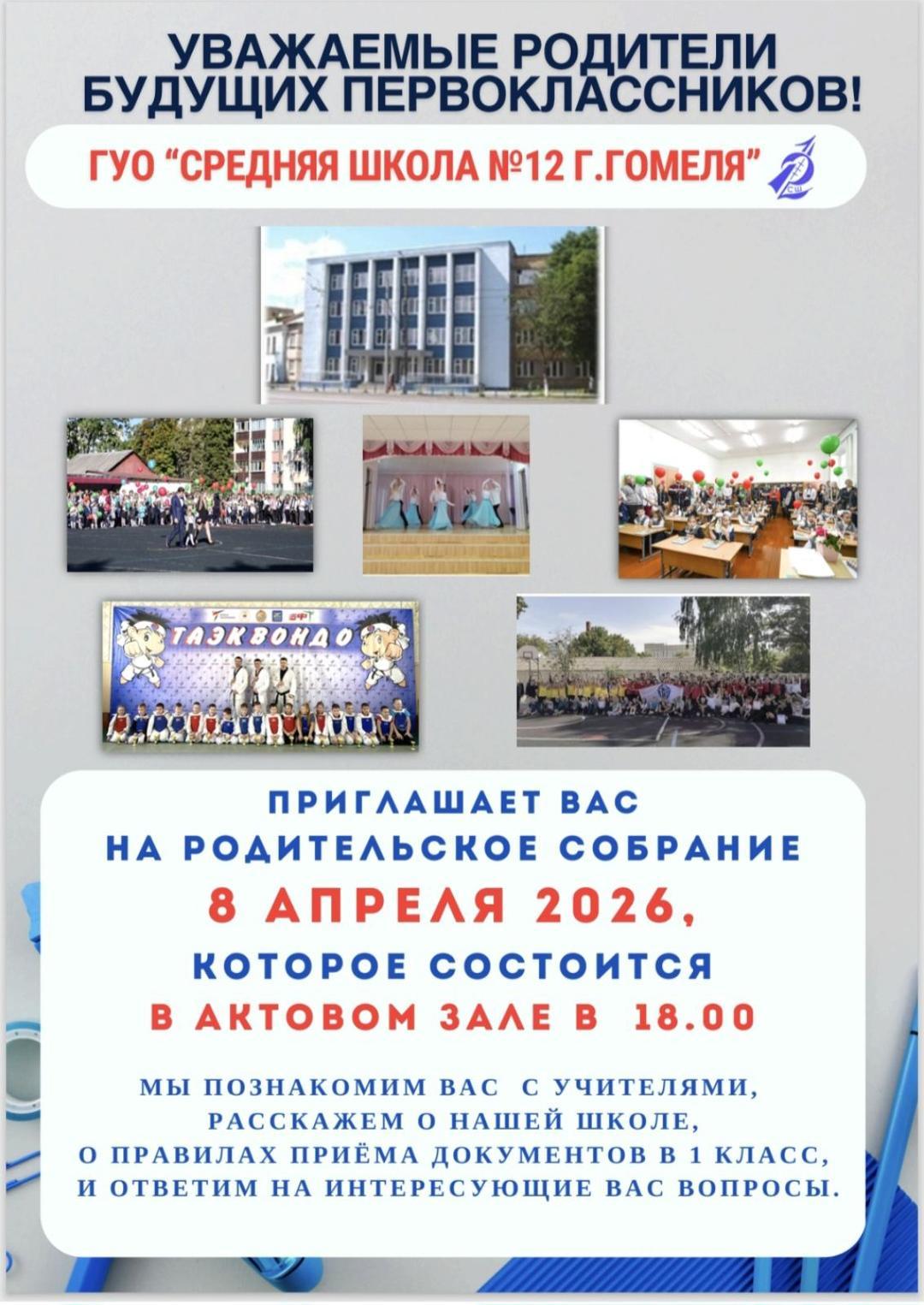 Приглашаем 8 апреля в 18::00 на собрание для родителей будущих первоклассников