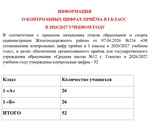 ИНФОРМАЦИЯ О КОНТРОЛЬНЫХ ЦИФРАХ ПРИЁМА В I КЛАСС В 2026/2027 УЧЕБНОМ ГОДУ